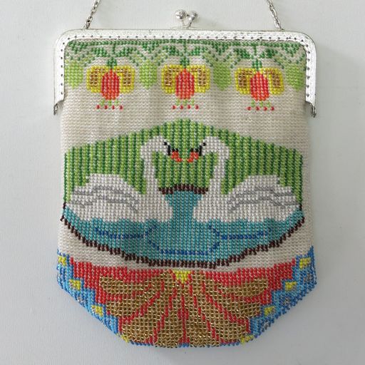Nu zet je de tas vast aan de beugel. Als je wilt kun je nog een sierrand maken onder aan de tas. Traditioneel werd dit gedaan door er kralenlusjes aan te naaien.