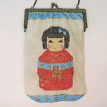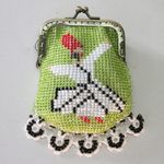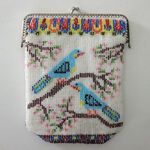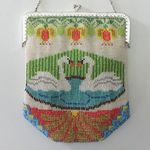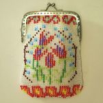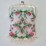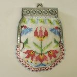 2017Gebreide kralen tas met door borduren gearceerde randen en een gehaakte kralenrand. De tas is van binnen gevoerd.