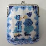 2016Tasje of beursje Lovebirds, 12x10 cm, van binnen gevoerd.